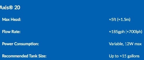 Aqua Illumination AXIS 20 gulv pumpe. Max. højde: 1,5 mt., Flow: op til 700 lt./t., Power: 12 watt.